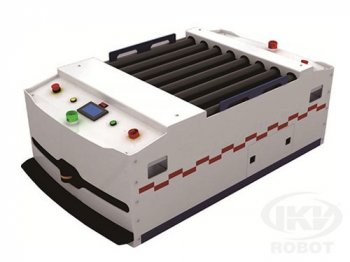 背負滾筒式AGV小車,車頂部安裝滾筒,通過與線體的通訊,可以輕松實現與外部設備的自動對接及物品的自動上下料,并具備全向運行的功能。
